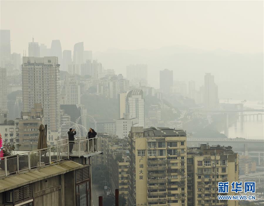 1月1日,游客在重慶鵝嶺二廠文藝街區(qū)內(nèi)一棟老樓的屋頂花園游覽。