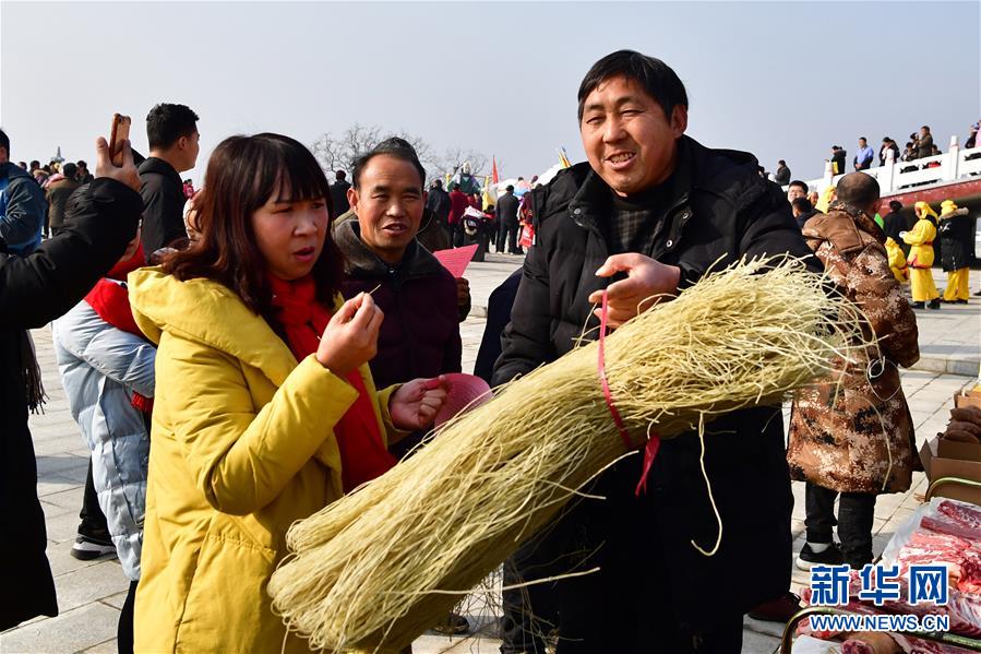 1月13日,游客(右)在展銷(xiāo)活動(dòng)上選購(gòu)粉條。
