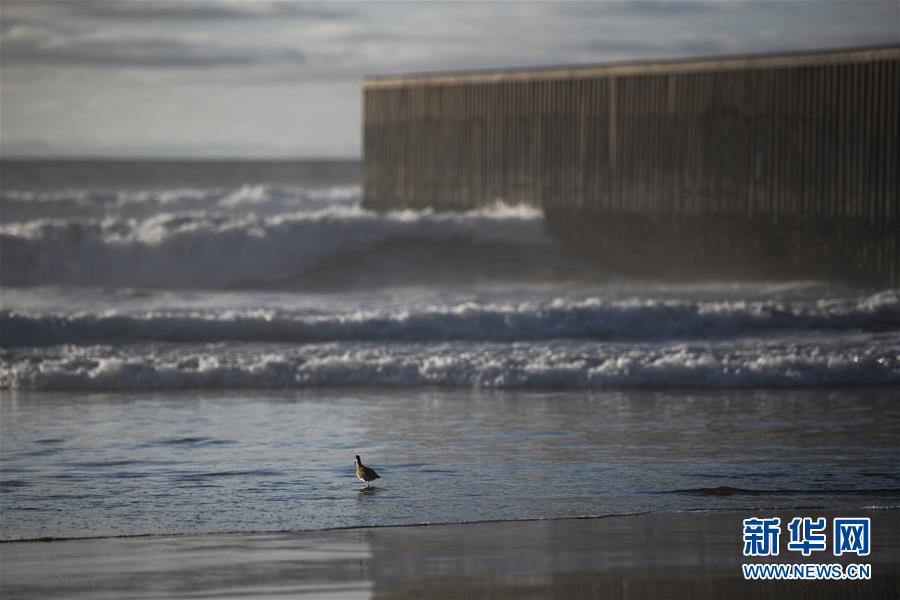 1月10日,在墨西哥邊境城市蒂華納,一只海鳥在美墨邊境墻邊徘徊。新華社記者 辛悅衛(wèi) 攝