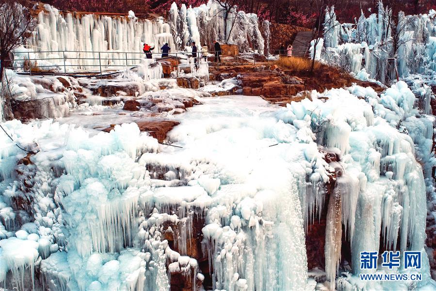近日,河北省涉縣太行五指山景區(qū)出現(xiàn)冰瀑景觀,吸引眾多游客到此觀賞。