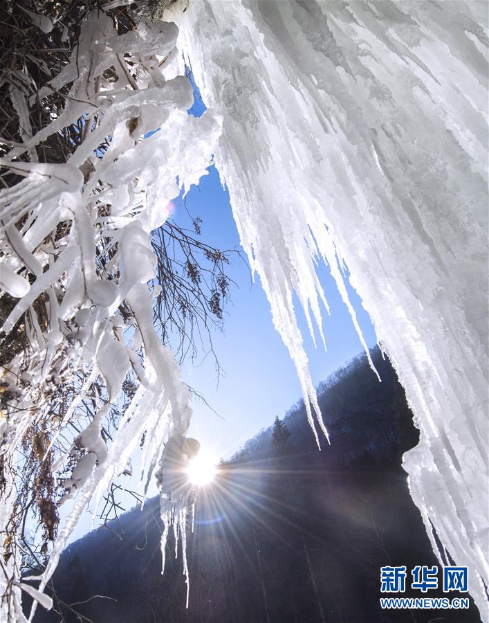 黑老鍋景區(qū)位于甘肅省慶陽市顯勝鄉(xiāng),峽谷長千余米,每年冬季泉水結(jié)成冰瀑,景色壯觀,吸引眾多游客前來游玩。 新華社記者李笑攝
