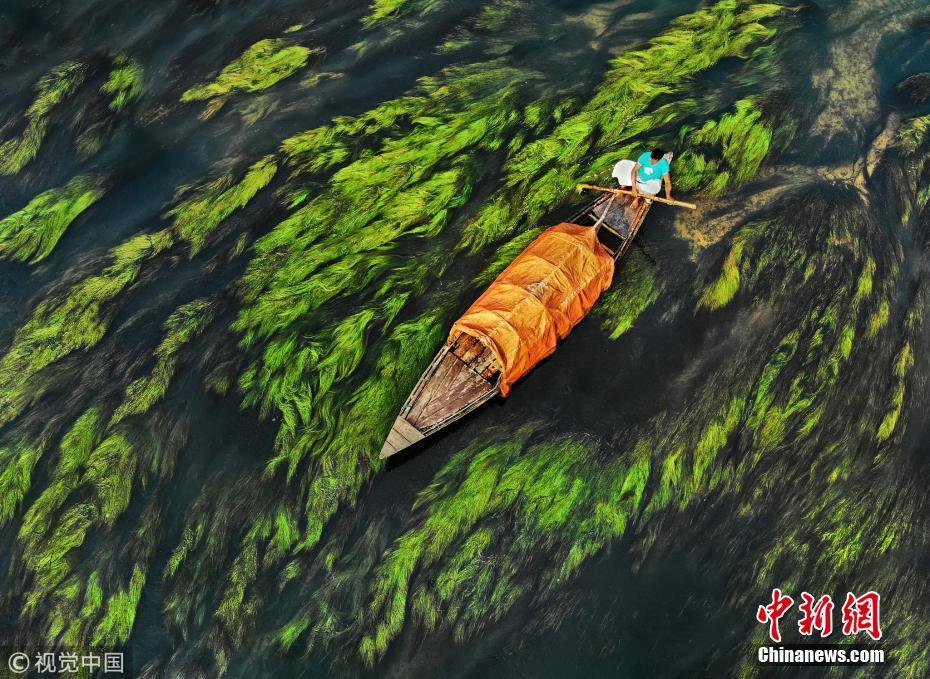 中國(guó)新聞網(wǎng)1月14日訊(具體拍攝時(shí)間不詳),孟加拉國(guó)烏拉帕拉,漁船在水流和藻類的映襯下前行,畫(huà)面看起來(lái)就像水彩畫(huà)一般。圖片來(lái)源:視覺(jué)中國(guó)