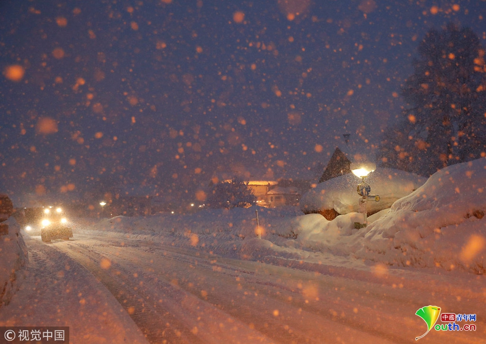 奧地利暴風雪持續(xù) 公交車站被積雪掩埋
