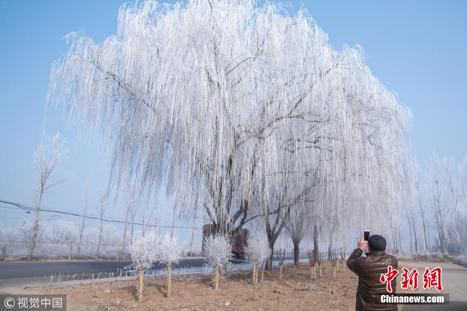 1月13日,107國(guó)道河北省定州路段出現(xiàn)霧?。鋻欤┚坝^,吸引路人駐足拍照留念。王保生 攝 圖片來(lái)源:視覺中國(guó)