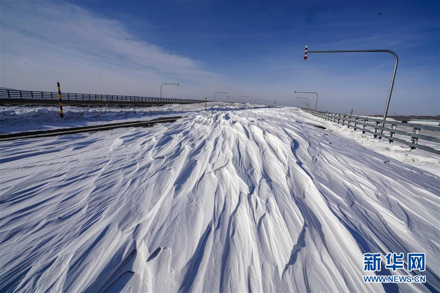 1月15日,在新疆瑪依塔斯風(fēng)區(qū)內(nèi),大風(fēng)將白雪吹到公路上。 瑪依塔斯風(fēng)區(qū)位于新疆西北部額敏縣境內(nèi)。這里東西風(fēng)交替頻繁,一年大風(fēng)天數(shù)超過150天,是世界上罕見的暴風(fēng)雪災(zāi)害地段。駐守在這里的新疆塔城公路管理局額敏分局瑪依塔斯應(yīng)急保障基地,近年來連續(xù)裝備拋雪機等冰雪搶險救災(zāi)裝備,有力地保障了這條道路的交通安全。 新華社記者趙戈攝