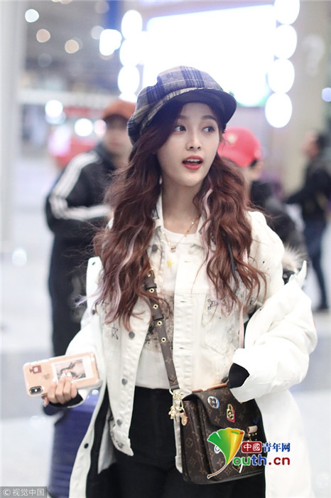 2019年1月17日,北京,吳宣儀現(xiàn)身機場。當晚她不懼低溫輕裝亮相提前過春天,青春裝扮甜美又時尚。吳宣儀側(cè)顏精致紅唇吸睛,還被抓拍到撅嘴賣萌一臉無辜的表情。