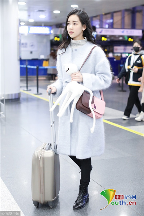 2019年1月27日,北京,陳都靈現(xiàn)身機(jī)場(chǎng)。手里拿著可愛(ài)白色公仔的她深夜現(xiàn)身機(jī)場(chǎng),皮膚狀態(tài)仍非常好,羨煞旁人。