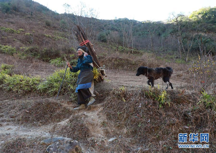 1月25日,在云南省蘭坪縣,余永妹背柴回家。