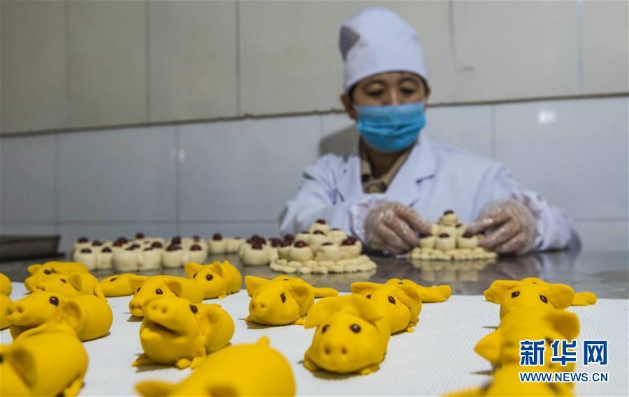 1月31日,河北黃驊市一家面花作坊的工人用面花模子制作面花。 河北黃驊市有著過年蒸面花的習俗。春節(jié)前夕,當?shù)孛婊ㄖ谱鞴S加班加點制作面花,供應春節(jié)市場。 新華社記者牟宇攝