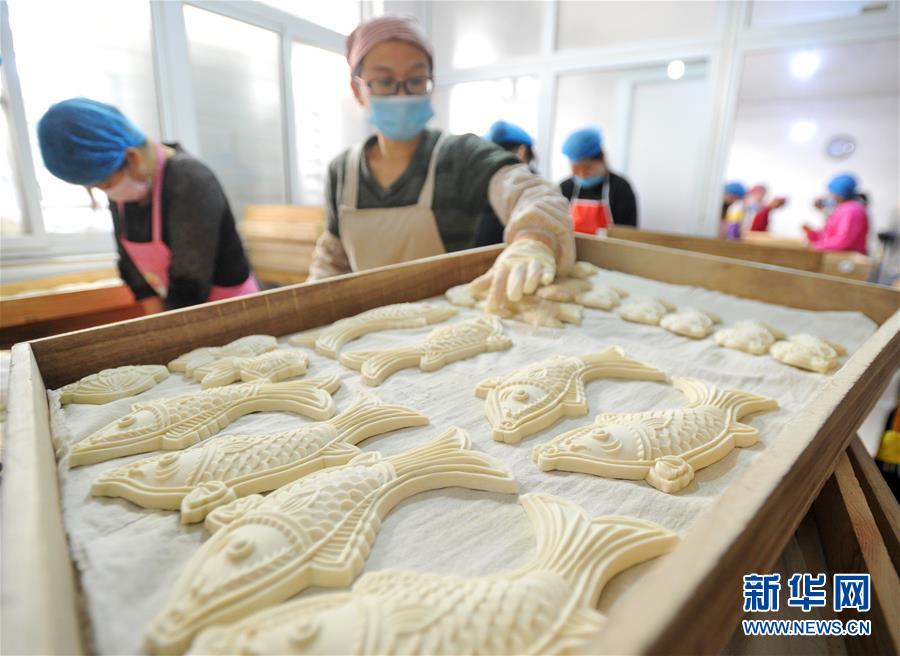 1月31日,河北黃驊市一家面花作坊的工人將制作好的面花擺放在蒸屜里。 河北黃驊市有著過年蒸面花的習(xí)俗。春節(jié)前夕,當?shù)孛婊ㄖ谱鞴S加班加點制作面花,供應(yīng)春節(jié)市場。 新華社記者牟宇攝