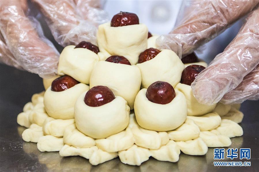 1月25日,河北棗強一家食品公司的面點師在手工制作花糕。 春節(jié)臨近,河北省棗強縣面食加工廠的面點師傅們忙著趕制花糕、花饃等傳統(tǒng)面食,以供應節(jié)日市場。當?shù)赜羞^年蒸花糕、做花饃的習俗,寓意步步登高,生活一年比一年好。 新華社記者 李曉果攝