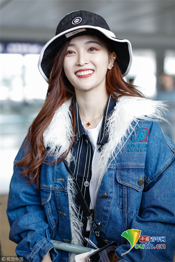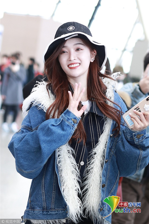 2月2日,上海,吳宣儀頭戴帽子身穿一襲牛仔服現(xiàn)身機(jī)場 。她自提大包回家過年 ,獲粉絲拜年祝福 ,吐舌狂賣萌。