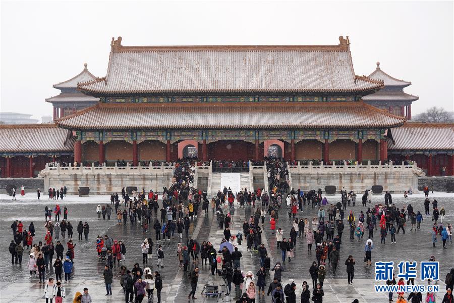 2月14日,游客在北京故宮游覽。 當日,北京降雪,大批游人來到故宮游覽賞雪。 新華社記者 金良快 攝
