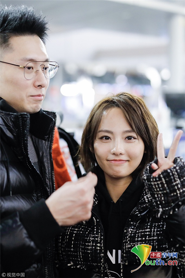 2月20日,上海,張嘉倪、買超深夜現(xiàn)身機(jī)場,啟程前往2019秋冬米蘭時裝周。張嘉倪依偎在老公懷里十分小女生,兩人對鏡頭比心狂撒狗糧,與粉絲親切合影簽名,十分接地氣。