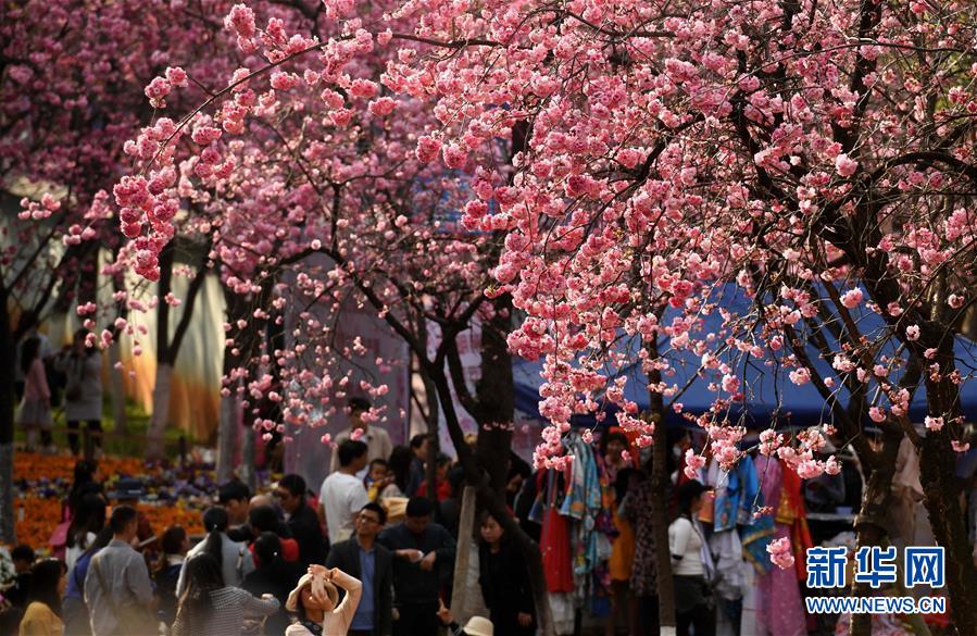 游人在昆明圓通山公園觀賞盛開的櫻花(3月16日攝)。近日,云南省昆明市迎來櫻花盛開的時(shí)節(jié)。昆明圓通山公園的數(shù)千株櫻花燦爛綻放,吸引了市民和游客前來觀花賞景。新華社記者藺以光攝
