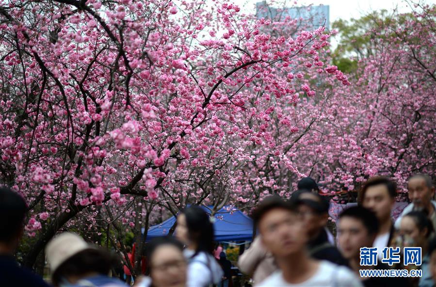 游人在昆明圓通山公園觀賞盛開的櫻花(3月16日攝)。近日,云南省昆明市迎來櫻花盛開的時(shí)節(jié)。昆明圓通山公園的數(shù)千株櫻花燦爛綻放,吸引了市民和游客前來觀花賞景。新華社記者秦晴攝