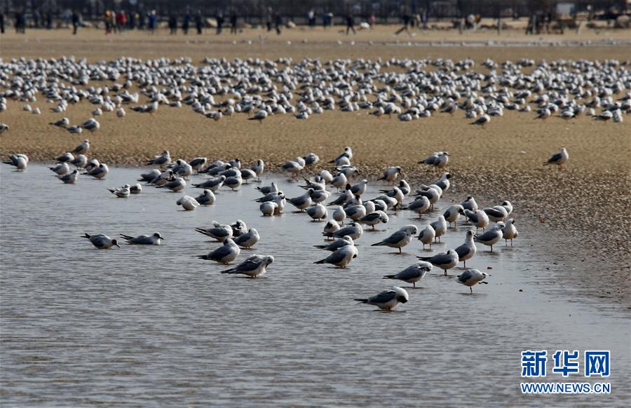 4月4日,一群候鳥在秦皇島市沿海濕地休憩。近日,大批候鳥飛抵河北省秦皇島市沿海濕地,出現(xiàn)“萬鳥臨?!逼嬗^。秦皇島沿海濕地鳥類食物豐富,每年春、秋兩季,大批候鳥遷徙經(jīng)過這里。新華社記者 楊世堯 攝