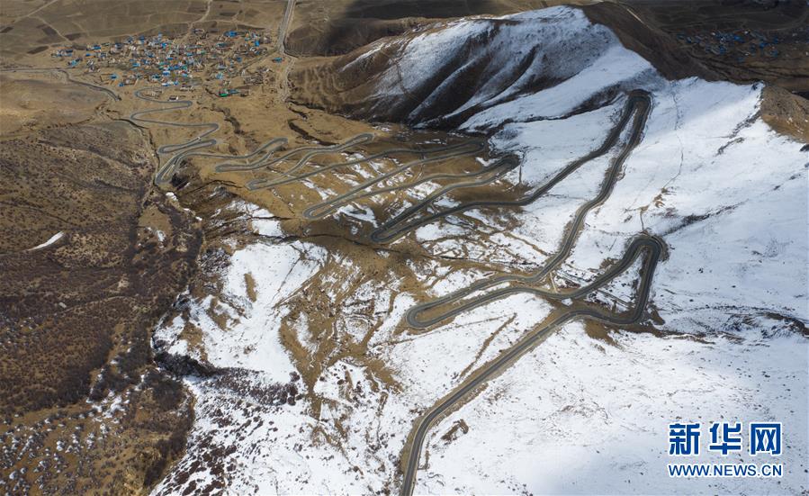 通往甘丹寺的崎嶇山路(4月8日無人機(jī)拍攝)。 新華社記者普布扎西攝