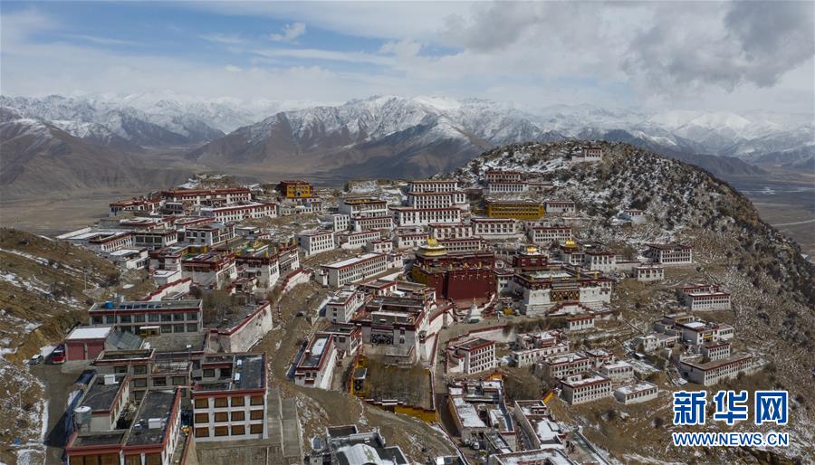 雪后的甘丹寺(4月8日無人機(jī)拍攝)。新華社記者普布扎西攝