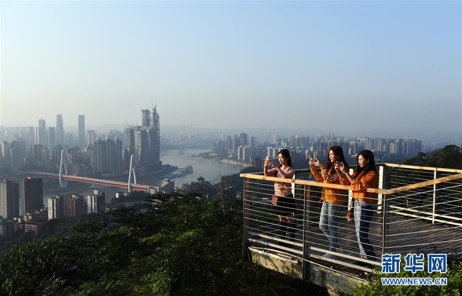 游客在位于重慶市南岸區(qū)的一棵樹觀景臺欣賞城市風(fēng)光(2018年10月10日攝)。 千里為重,廣大為慶。城在山水間、山水在城中,重慶頗具特色的立體城市景觀是城市靚麗的名片。 新華社記者 王全超 攝