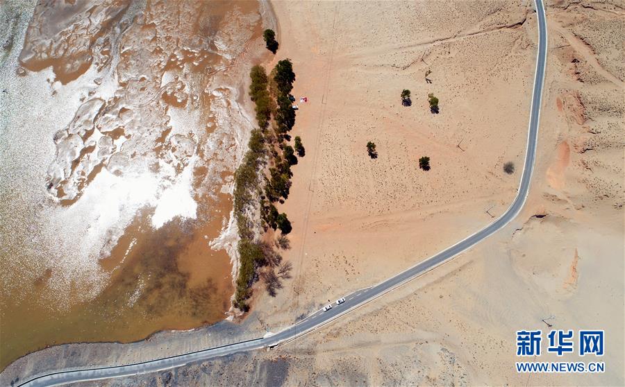 在青海貴德,千姿湖景區(qū)內(nèi)群山與湖水相映成畫(4月16日無人機(jī)拍攝)。地處黃河上游河段的青海省海南藏族自治州貴德縣是黃土高原向青藏高原的過渡地帶,黃河水流經(jīng)于此,大河兩岸壯美雄渾,碧水丹山相映成畫,有著“天下黃河貴德清”的美譽(yù)。新華社記者 張宏祥 攝