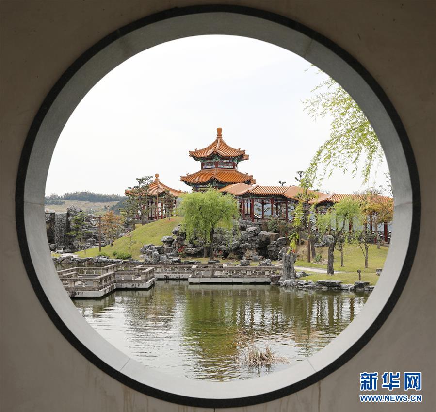 這是2019年4月18日在日本鳥取拍攝的中式園林“燕趙園”?!把嘹w園”是1995年作為日本鳥取縣和中國河北省的友好關系象征而建立。該園總面積約1萬平方米,借附近的山、湖作景,仿照中國皇家園林設計。據(jù)介紹,該園園內(nèi)建筑先在中國試建后再拆解運至日本,在中國工匠指導下組建。 新華社記者杜瀟逸攝