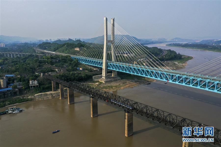 重慶白沙沱長(zhǎng)江大橋(下)和新白沙沱長(zhǎng)江特大橋(上)(4月23日無(wú)人機(jī)拍攝)。 4月23日下午5點(diǎn)40分,隨著重慶白沙沱長(zhǎng)江大橋通行的最后一列客運(yùn)列車(chē)順利通過(guò),這座“服役”了59年的重慶首座長(zhǎng)江大橋進(jìn)入“退役”倒計(jì)時(shí)。4月24日后,所有列車(chē)將改線(xiàn)經(jīng)距白沙沱長(zhǎng)江大橋約100米的新白沙沱長(zhǎng)江特大橋通行,新橋“接力”老橋,運(yùn)輸能力將得到大幅提升。 白沙沱長(zhǎng)江大橋于1958年開(kāi)工,1960年通過(guò)首趟列車(chē),是繼武漢長(zhǎng)江大橋之后的第二座長(zhǎng)江大橋。 新華社記者 劉潺 攝
