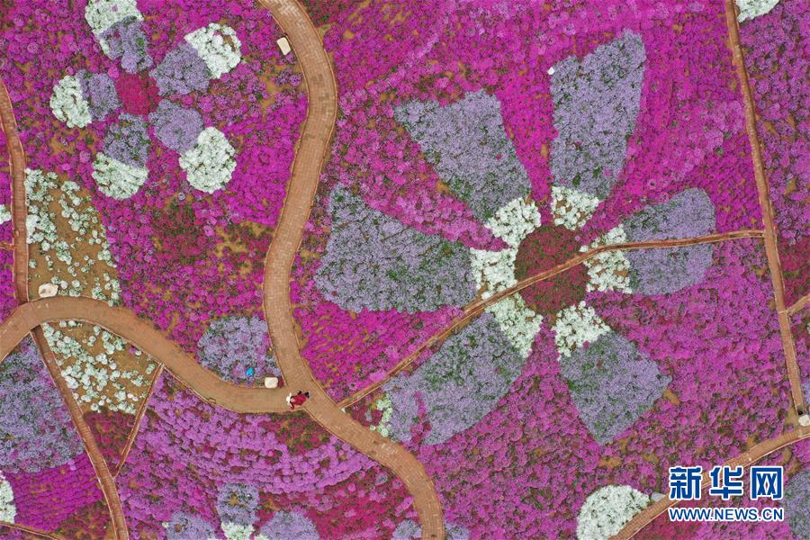 4月24日無人機(jī)拍攝的雨花谷景區(qū)。近日,河北省遷西縣雨花谷景區(qū)的芝櫻花盛開,吸引游客前來觀賞。 新華社記者 楊世堯 攝