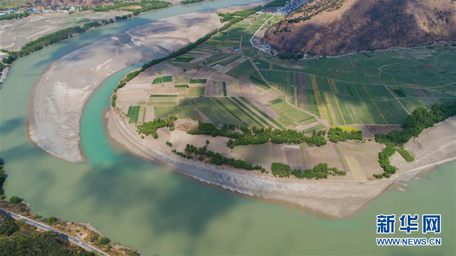 這是無人機拍攝的“長江第一灣”一景(3月17日攝)?!伴L江第一灣”位于云南省麗江市玉龍納西族自治縣石鼓鎮(zhèn),萬里長江從青藏高原奔騰而下,與瀾滄江、怒江一起在橫斷山脈的高山深谷中穿行形成并流的壯麗景觀。金沙江在麗江石鼓鎮(zhèn)突然以急轉彎轉向東北,形成一個宛若“V”字形的大轉彎,得名“長江第一灣”。春日里,“長江第一灣”江水青碧,美景迷人。 新華社記者胡超攝