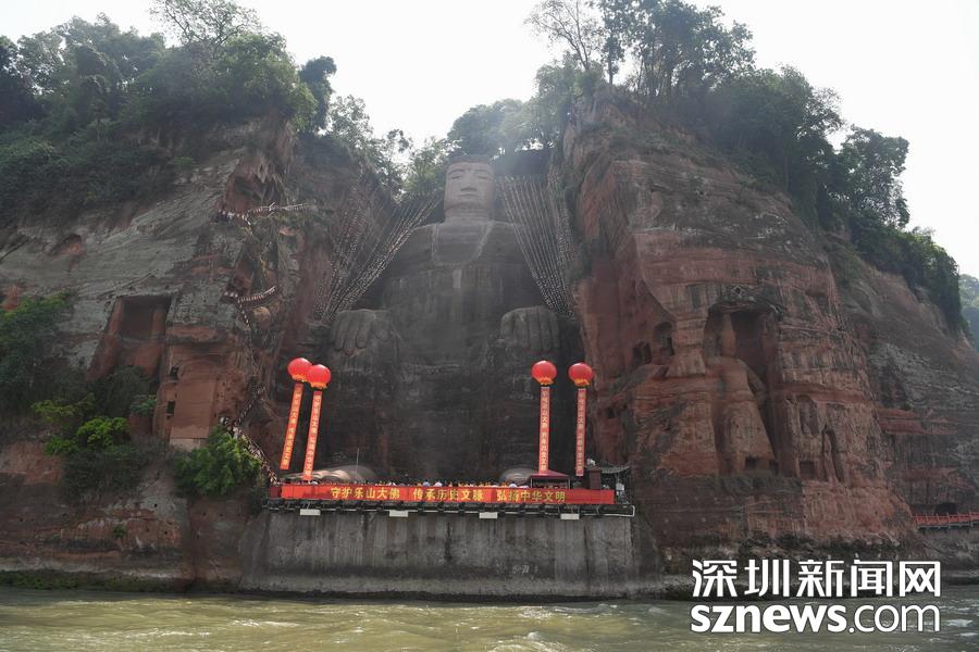 2019年4月26日,四川樂山,樂山大佛經(jīng)過閉關(guān)“體檢”、美容保養(yǎng)及智能監(jiān)測等環(huán)節(jié)后,胸腹部開裂險(xiǎn)情排除,生物病害得到有效控制,大佛正式出關(guān)。