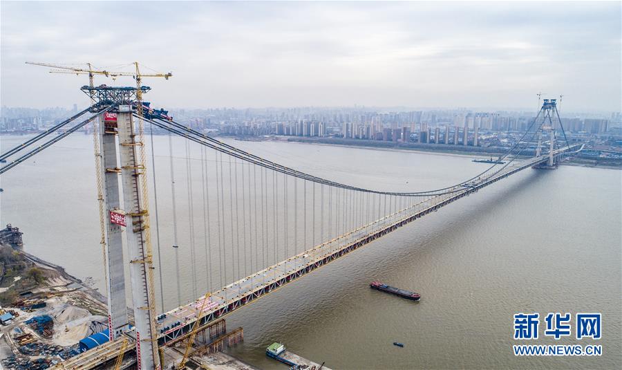 12月29日,武漢楊泗港長江大橋順利合龍(無人機拍攝)。新華社記者 肖藝九 攝