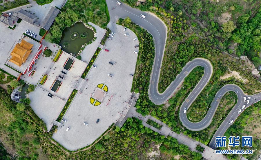 這是5月2日拍攝的盤山風(fēng)景名勝區(qū)正門景觀(無人機拍攝)。新華社記者 岳月偉 攝
