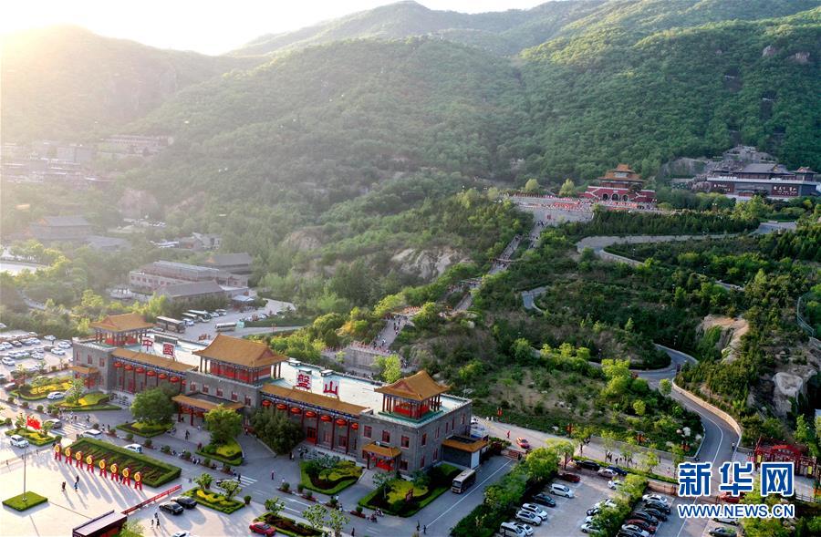 這是5月2日拍攝的盤(pán)山風(fēng)景名勝區(qū)正門(mén)景觀(guān)(無(wú)人機(jī)拍攝)。新華社記者 岳月偉 攝