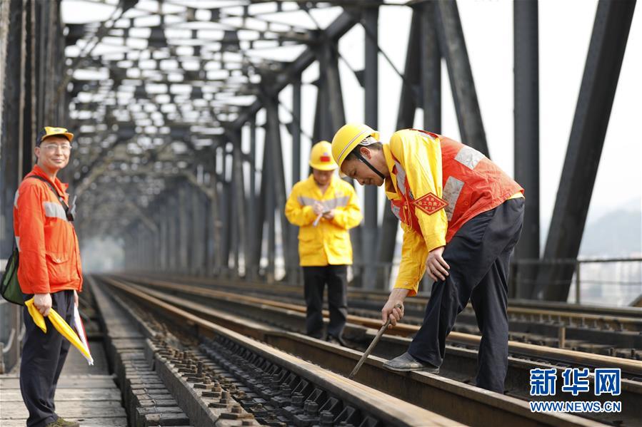 中國(guó)鐵路成都局有限公司重慶工務(wù)段的巡檢班組在白沙沱長(zhǎng)江大橋上進(jìn)行巡檢作業(yè)(4月23日攝)。 4月23日下午5點(diǎn)40分,隨著重慶白沙沱長(zhǎng)江大橋通行的最后一列客運(yùn)列車順利通過(guò),這座“服役”了59年的重慶首座長(zhǎng)江大橋進(jìn)入“退役”倒計(jì)時(shí)。4月24日后,所有列車將改線經(jīng)距白沙沱長(zhǎng)江大橋約100米的新白沙沱長(zhǎng)江特大橋通行,新橋“接力”老橋,運(yùn)輸能力將得到大幅提升。 白沙沱長(zhǎng)江大橋于1958年開工,1960年通過(guò)首趟列車,是繼武漢長(zhǎng)江大橋之后的第二座長(zhǎng)江大橋。 新華社記者 劉潺 攝