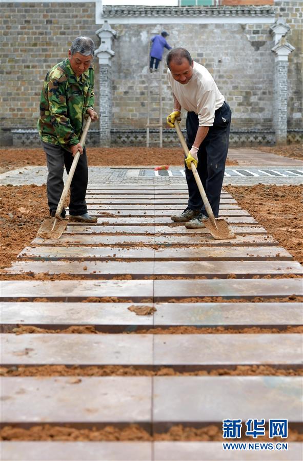 4月28日,在江西省南昌市南昌縣岡上鎮(zhèn)省級(jí)文物保護(hù)單位“吳氏家廟”內(nèi),搶修工程隊(duì)的工人在鋪磚。近年來(lái),江西省南昌市南昌縣推動(dòng)古村落保護(hù)工作。2019年,首批搶修工程隊(duì)進(jìn)駐南昌縣岡上鎮(zhèn),對(duì)當(dāng)?shù)刂氖〖?jí)文物保護(hù)單位“吳氏家廟”及縣級(jí)文物保護(hù)單位“吳培荊堂古建筑群”進(jìn)行搶救性維修。同時(shí)當(dāng)?shù)卣€制定文旅規(guī)劃,讓文物保護(hù)與觀光旅游相結(jié)合,推動(dòng)鄉(xiāng)村振興。 新華社記者 彭昭之 攝