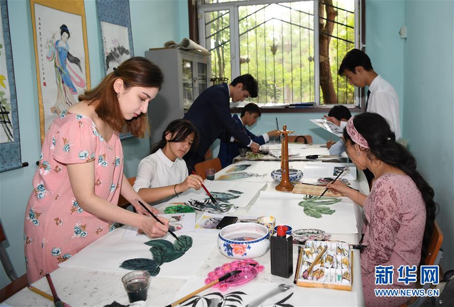 6月10日,在塔吉克斯坦首都杜尚別,學生在塔吉克斯坦民族大學孔子學院畫畫。 塔吉克斯坦共和國,簡稱塔吉克斯坦,是位于中亞東南部的內(nèi)陸國家。塔吉克斯坦是多民族國家,全國共有86個民族,人口約910萬。 新華社記者沙達提攝