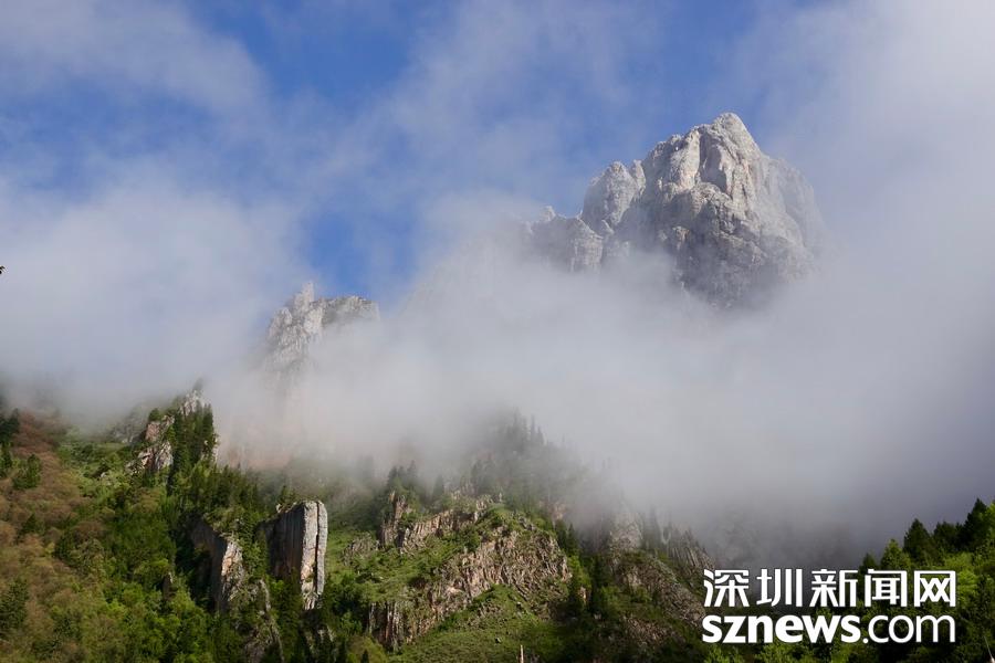 乘坐通往核心景區(qū)的旅游車進(jìn)入臨近壯觀山體的地段,從獨特的角度看到了云霧繚繞的山峰,真有置身仙境的感覺。李仁奇攝
