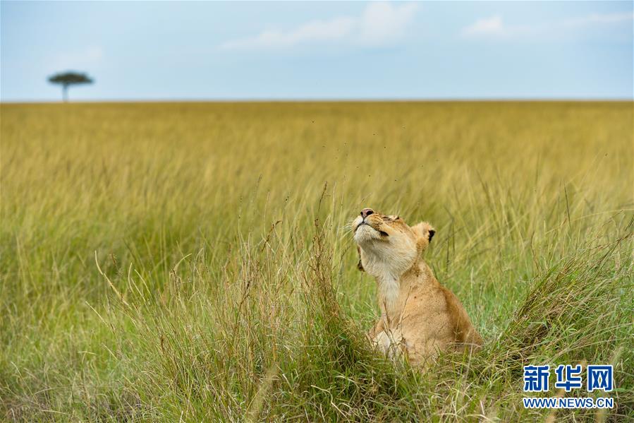 6月17日,在肯尼亞馬賽馬拉國家保護區(qū),一頭獅子在草叢中。 新華社記者 李琰 攝