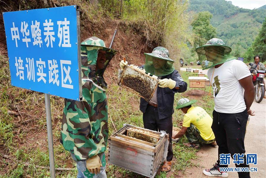 在云南省西盟縣勐梭鎮(zhèn)班母村中華蜂養(yǎng)殖基地,村民在學習養(yǎng)蜂技術(6月16日攝)。 精準扶貧的春風,吹到了西南邊疆。在云南省西盟縣的拉祜山寨,人們告別了吃不飽、穿不暖、沒有安全住房的日子。學習先進技術,改變精神面貌,發(fā)展養(yǎng)蜜蜂、種甘蔗等甜蜜產(chǎn)業(yè),拉祜人的日子越過越甜。 新華社記者 秦晴 攝