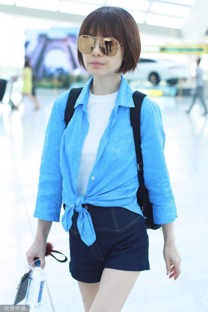 2019年5月25日,北京,魯豫現(xiàn)身機場。她梳著齊耳短發(fā)氣質(zhì)清爽干練,穿藍(lán)色襯衫內(nèi)搭白色t恤,夏日清涼氣息撲面而來。
