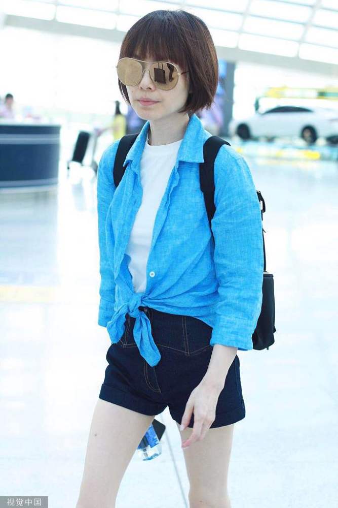 2019年5月25日,北京,魯豫現(xiàn)身機場。她梳著齊耳短發(fā)氣質(zhì)清爽干練,穿藍(lán)色襯衫內(nèi)搭白色t恤,夏日清涼氣息撲面而來。