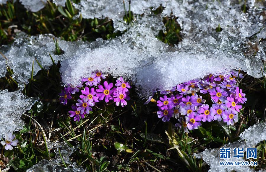 在年保玉則,野花上的冰雪漸漸消融(5月21日攝)。 新華社記者 張宏祥 攝