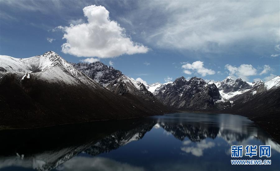在年保玉則,雪山與湖泊相映成畫(5月21日無人機(jī)拍攝)。新華社記者 張宏祥 攝