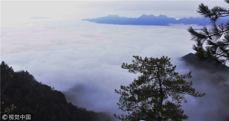 2019年3月3日,陜西商洛,位于鎮(zhèn)安縣的塔云山景區(qū)云海翻騰,宛如仙境。袁景智/視覺中國 編輯/陳進(jìn)