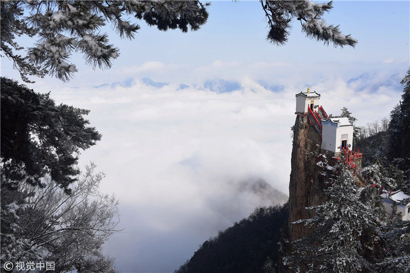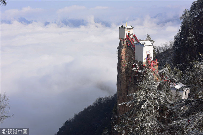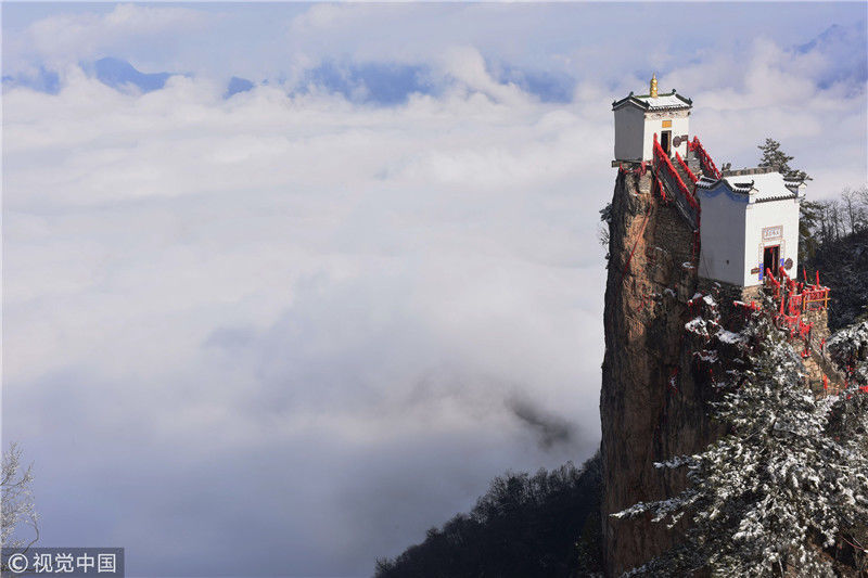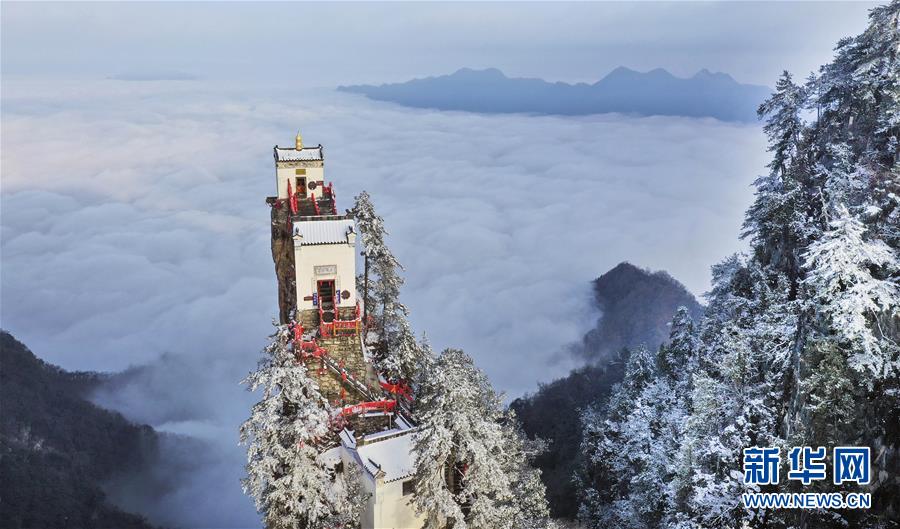 3月3日拍攝的塔云山金頂觀音殿。雪后初霽,秦嶺深處的塔云山景區(qū)云海翻騰,宛如仙境。位于陜西省鎮(zhèn)安縣柴坪鎮(zhèn)境內(nèi)的塔云山,其主峰上的古建筑群始建于明正德年間,其中金頂觀音殿建于塔云山萬仞絕頂之上,遠(yuǎn)遠(yuǎn)望去,壯觀無比。 新華社記者陶明攝