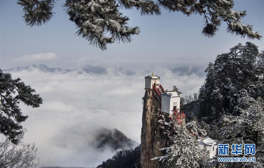 3月3日拍攝的塔云山金頂觀音殿。 新華社記者陶明攝