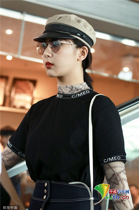 2019年7月25日,北京,楊紫現(xiàn)身機(jī)場(chǎng)。她穿黑色短T配牛仔裙變時(shí)髦女郎,戴報(bào)童帽架墨鏡”港風(fēng)女sir“即視感,人氣爆棚。