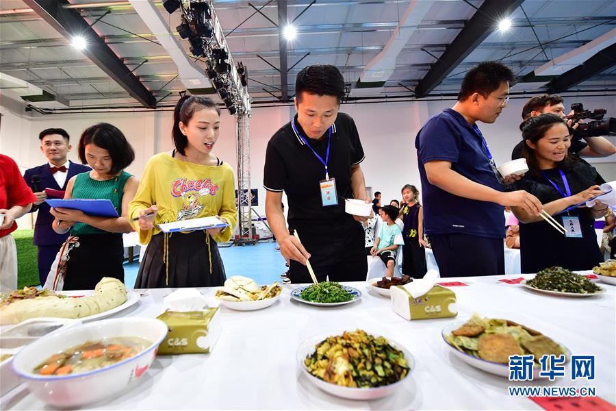 8月3日,在鄉(xiāng)村美食文化大賽現(xiàn)場,評委在對菜品進(jìn)行評定。新華社記者馮大鵬攝