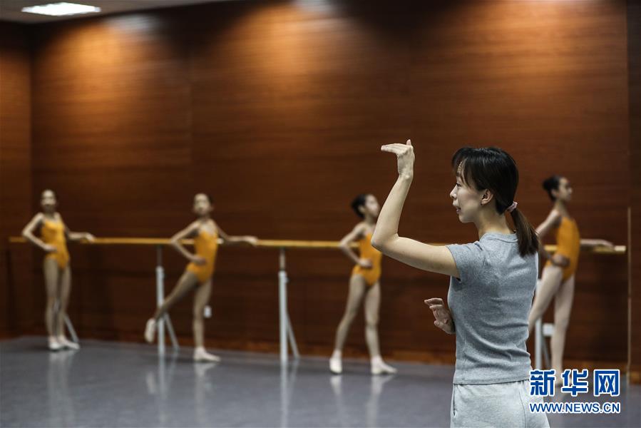 4月12日,遼寧芭蕾舞團(tuán)附屬芭蕾舞蹈學(xué)校的老師張夢妮在為一年級的學(xué)生上芭蕾基訓(xùn)課。新華社記者 潘昱龍 攝