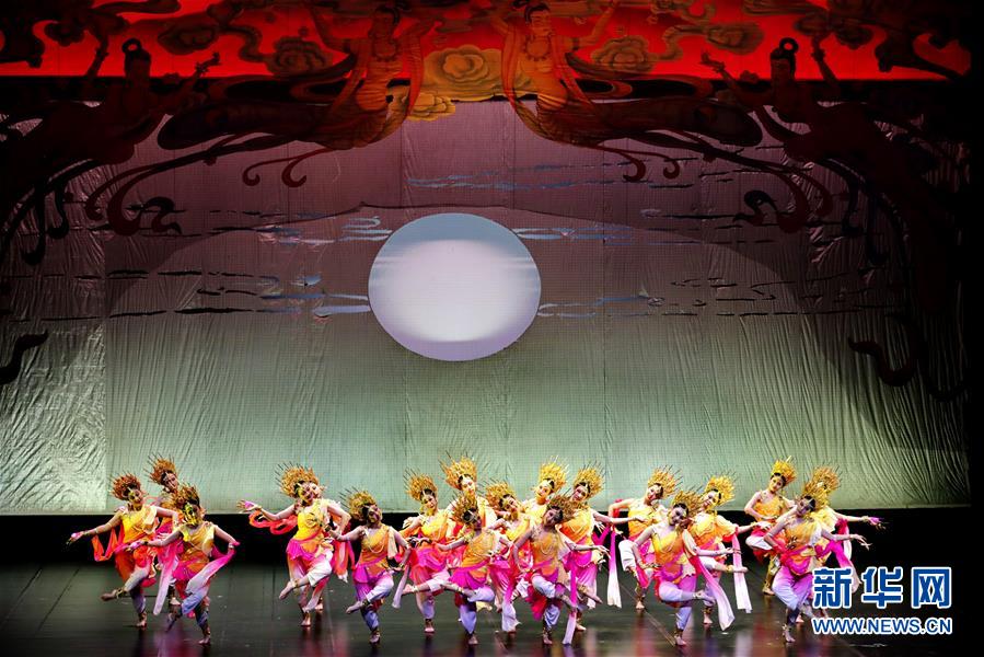 8月7日晚,舞蹈演員們在表演中。 當(dāng)日,“舞出中國風(fēng)”慶祝新中國成立70周年公益展演在上海國際舞蹈中心舉行。舞蹈家黃豆豆攜手30位青年舞者進行志愿演出,并與多家藝術(shù)團隊合作,共同呈現(xiàn)了一臺具有濃郁中國風(fēng)的原創(chuàng)舞專場,為新中國成立70周年獻禮。 新華社記者 劉穎 攝